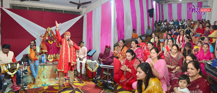 शहरातील राधा-कृष्ण मंदिरात रंगली माता की चौकी