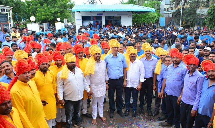 पारंपारिक ढोल पथकासह वाजत-गाजत जल्लोषात गणरायाची मिरवणुक एमआयडीसीत रंगली होती. मोठ्या उत्साहात निघालेल्या मिरवणुकीत कामगारांनी ठेका धरला होता. संघटनेचे पदाधिकारी व कंपनीतील अधिकाऱ्यांनी गणपती बाप्पा मोरया, पुढच्या वर्षी लवकर या! चा गजर केला.