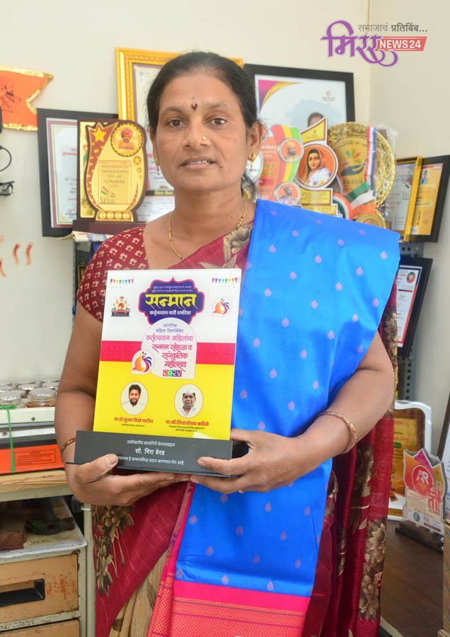 अहमदनगर (प्रतिनिधी)- बचत गटाच्या गृह उद्योग व्यवसायातून आत्मनिर्भर होवून इतर महिलांना सक्षम करण्यासाठी प्रयत्न करणाऱ्या मिरा बाळासाहेब बेरड यांना नुकतेच कर्तृत्ववान नारी शक्तीच्या पुरस्काराने गौरविण्यात आले. उमेद अभियानातंर्गत बेरड यांनी गृह उद्योगाच्या माध्यमातून यशस्वीपणे स्वत:चा व्यवसाय उभा करुन अनेक महिलांना रोजगार उपलब्ध करुन दिला असून, त्यांच्या कार्याची दखल घेण्यात आली आहे.