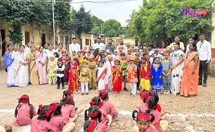 स्वातंत्र्य संग्रामातील महापुरुषांच्या वेशभूषेतील विद्यार्थ्यांनी वेधले लक्ष
