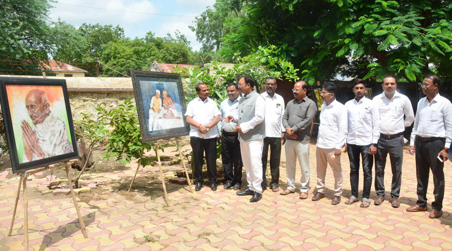 प्रास्ताविक रोहित परदेशी यांनी केले. प्रा. विधाते यांनी कुडिया यांना मानपत्र देवून त्यांचा सत्कार केला. उपस्थितांनी कला शिक्षक कुडिया यांनी महात्मा गांधी यांच्या जीवनावर रेखाटलेल्या चित्र प्रदर्शनाची पहाणी करुन चित्रांचे कौतुक केले.
