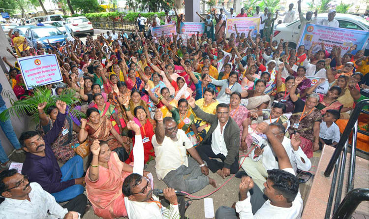 या आंदोलनात संस्थापक अध्यक्ष महेंद्र विधाते, राज्य उपाध्यक्ष कविता धिवारे, राज्य समन्वयक सविता विधाते, सुभाष सोनवणे, शितल दळवी, कावेरी साबळे, उत्तम गायकवाड, कैलास पवार, विद्या अभंग, मेजबीन सय्यद, अश्विनी दळवी, छाया भूमकर, बाबासाहेब गोर्डे आदींसह सर्व तालुकाध्यक्ष, पदाधिकारी व महिला कर्मचारी मोठ्या संख्येने सहभागी झाल्या होत्या.