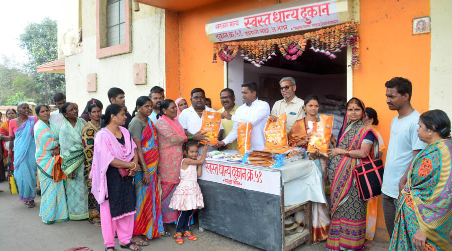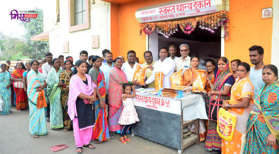 नगर-कल्याण रोड, दातरंगे मळा येथील स्वस्त धान्य दुकानात भाजपचे शहर सचिव दत्ता गाडळकर यांच्या हस्ते लाभार्थींना शिधा वाटप करण्यात आले. यावेळी भाजपच्या सरचिटणीस सविता कोटा, प्रा. भगवान काटे, अभय दातरंगे, धान्य दुकानदार संजय सागावकर, रोहिणी कोडम, योगिता ढुमणे आदींसह लाभार्थी मोठ्या संख्येने उपस्थित होत्या.