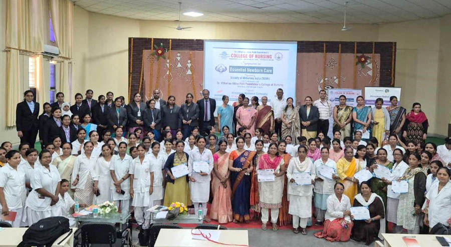 अहमदनगर (प्रतिनिधी)- डॉ. विठ्ठलराव विखे पाटील परिचारिका महाविद्यालयामध्ये सोसायटी ऑफ मिडवाइव्हज इंडिया (सोमि) आणि हिमालय वेलनेस कंपनी यांच्या संयुक्त विद्यमाने नवजात शिशूची आवश्यक काळजी या विषयावर परिसंवादाचे (सिमपोझियम) आयोजन करण्यात आले होते. या परिसंवादाला परिचारिकांचा उत्स्फूर्त प्रतिसाद लाभला.