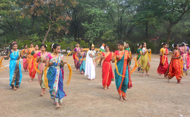 प्रारंभी ढोलच्या गजराने व महाराष्ट्रातील पारंपारिक लेझिम पथकाने पाहुण्यांचे स्वागत करण्यात आले. पारंपारिक वेशभूषेतील विद्यार्थिनींनी लेझिमचे बहारदार सादरीकरण केले. यामध्ये भारत मातेच्या वेशभूषेत आलेल्या विद्यार्थिनीने सर्वांचे लक्ष वेधले.