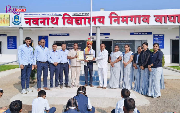 अहिल्यानगर (प्रतिनिधी)- निमगाव वाघा (ता. नगर) येथील नवनाथ विद्यालयातील उपशिक्षक प्रमोद नाथा थिटे यांना राष्ट्रीय आदर्श शिक्षक पुरस्कार मिळाल्याबद्दल त्यांचा नवनाथ विद्यालय, स्व. पै. किसनराव डोंगरे बहुउद्देशीय संस्था, श्री नवनाथ युवा मंडळ तसेच धर्मवीर ग्रामीण सार्वजनिक वाचनालय यांच्या संयुक्त विद्यमाने सत्कार करण्यात आला.