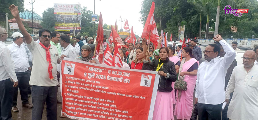 कामगार विरोधी चार श्रमसंहिता रद्द करावे, लोकशाही विरोधी जन सुरक्षा विधेयक मागे घ्यावे, शेतकऱ्यांचे संपूर्ण कर्ज माफ करून दरमहा किमान 10 हजार रुपये पेन्शन द्यावी, भारत-अमेरिका व्यापार रद्द करावा, सर्व कर्मचाऱ्यांना किमान मासिक वेतन 30 हजार रुपये 10 हजार रुपये पेन्शन द्यावी, जीवनावश्यक औषधावरील जीएसटी रद्द करावी, सर्व कर्मचाऱ्यांना जुनी पेन्शन योजना लागू करावी, शेतकऱ्यांसाठी एमएसपी लागू करावी, मनरेगामध्ये किमान दोनशे दिवस कामे द्यावे, सर्व कंत्राटी, रोजंदारी, अंशकालीन कर्मचाऱ्यांच्या सेवा नियमित कराव्या, सुधारित राष्ट्रीय निवृत्ती योजनेची अंमलबजावणी करावी, जाचक नवीन राष्ट्रीय शैक्षणिक धोरण रद्द करावे, आरोग्य अभियानातील आशा व गटप्रवर्तकांना 26 आणि 30 हजार मानधन द्यावे, कंत्राटी कर्मचाऱ्यांचा दर्जा द्यावा, विडी कामगारांना दर हजारी तीनशे रुपये मजुरी द्यावी, आहार कर्मचाऱ्यांना दरमहा 1 हजार रुपये मानधन वाढ द्यावी, औषध विक्री प्रतिनिधींच्या सर्वसामान्य कामकाजाचे वैधानिक नियम तयार करण्याची मागणी करण्यात आली आहे. या मागणीचे निवेदन निवासी उपजिल्हाधिकारी निवासी उपजिल्हाधिकारी दादासाहेब गीते यांना देण्यात आले.