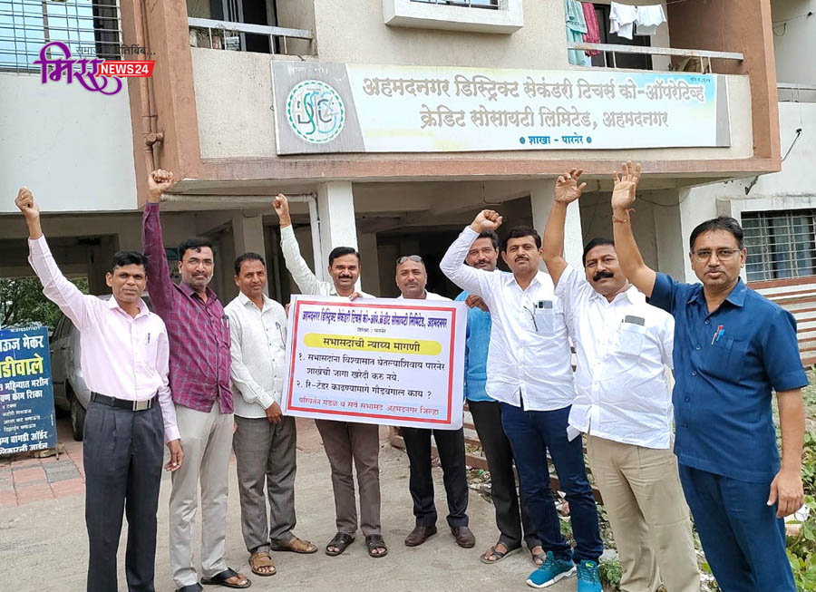 अहमदनगर (प्रतिनिधी)- अहमदनगर जिल्हा माध्यमिक शिक्षक सोसायटीच्या सत्ताधारी संचालक मंडळाने पारनेर शाखेची जागा सभासदांना विश्वासात न घेता खरेदी करण्याची कार्यवाही चालविल्याच्या निषेधार्थ विरोधी संचालक व सभासदांनी पारनेर शाखे समोर निदर्शने केली. तर पारनेर तालुक्यातील सर्व सभासदांचा मेळावा घेऊन त्यांच्या समोर जागेचा प्रश्न मांडावा व त्या नंतरच सोयीची जागा खरेदी करण्याचा निर्णय घेण्याची मागणी करण्यात आली आहे.