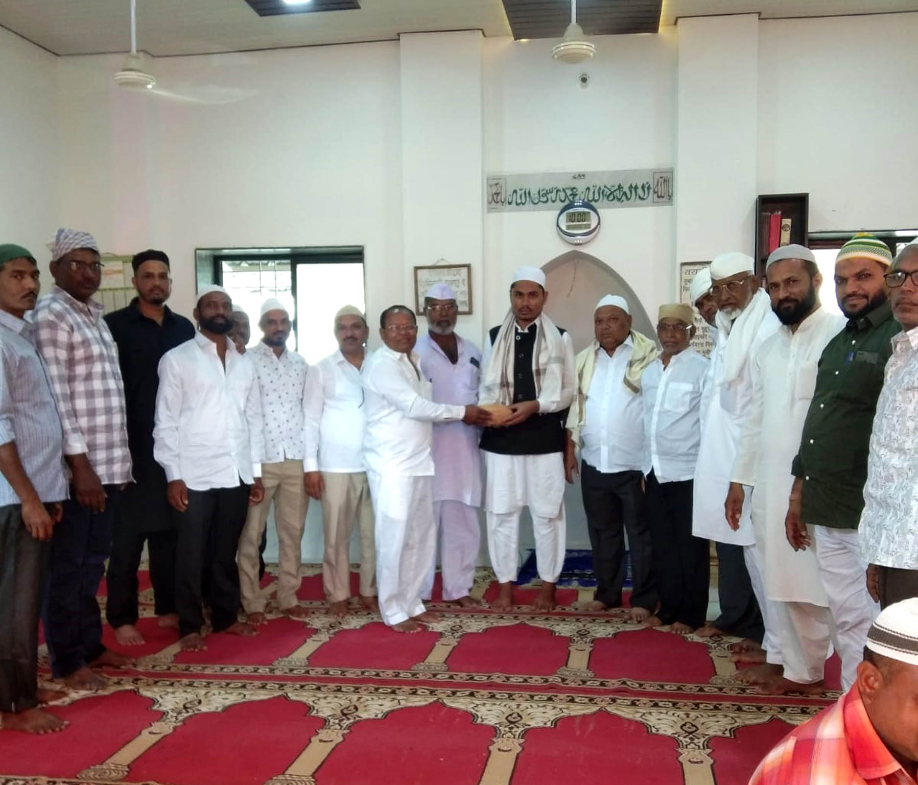 ग्रामस्थांच्या वतीने मशिदीतील मौलानाचा सत्कार