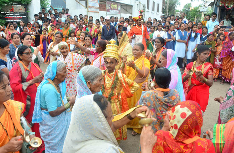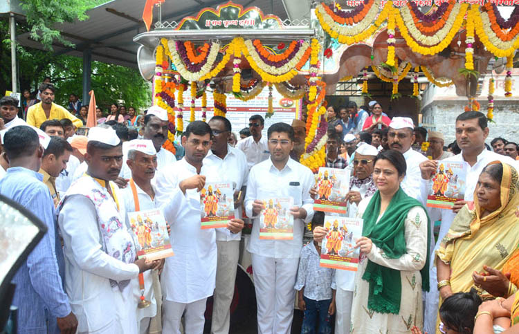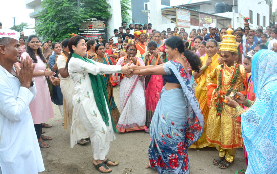 पारंपारिक वाद्यांच्या गजरात गावात दिंडीची प्रदक्षिणा मारण्यात आली. जिल्हाधिकारी यांच्या पत्नी सौ. सालीमठ यांनी देखील दिंडीतील महिलांसह फुगड्यांचा फेर धरला होता. दिंडीच्या स्वागतासाठी महिलांनी घरासमोर सडा-रांगोळी टाकली होती. दिंडीच्या अग्रभागी शालेय विद्यार्थी भगवे ध्वज व लेझिम घेऊन सहभागी झाले होते. वारकरी संप्रदायाची पताका खांद्यावर घेऊन ज्ञानोबा माऊली तुकारामचा जयघोष करणारे झेंडेकरी, टाळकरी, भजनी मंडळी, फुलांनी सजवलेले रथ व डोक्यावर तुळशी, कळस घेतलेल्या महिला दिंडीत सहभागी झाल्या आहेत. दिंडीतील रथाचे दर्शन घेण्यासाठी भाविकांनी गर्दी केली होती.