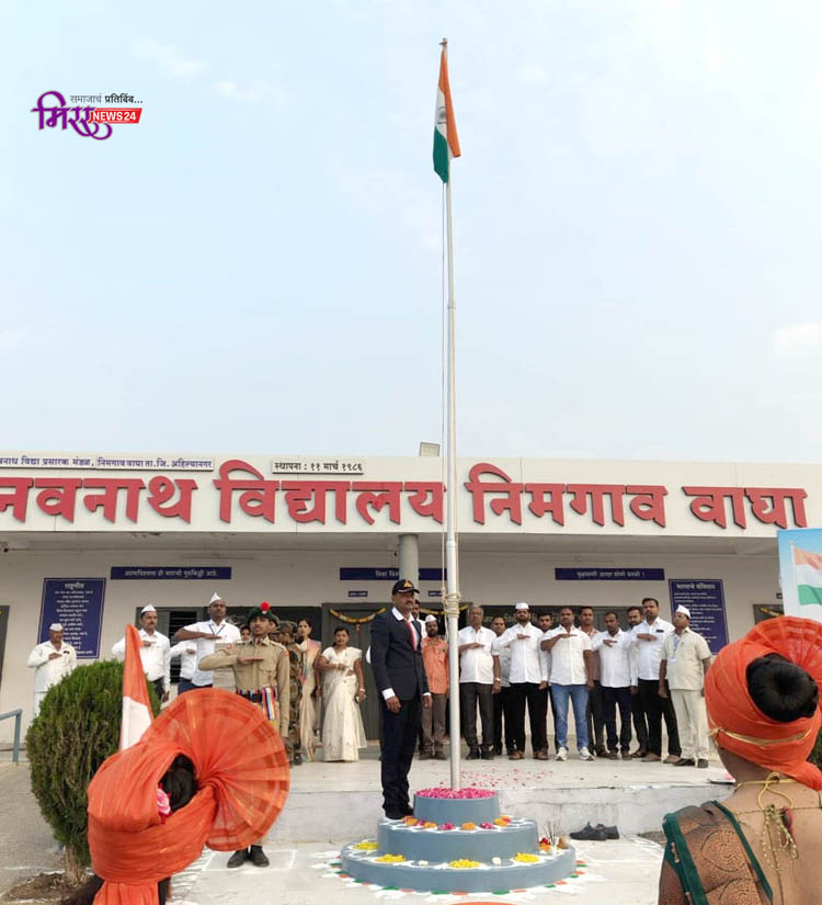 अहिल्यानगर (प्रतिनिधी)- नगर तालुक्यातील निमगाव वाघा येथे 77 वा प्रजासत्ताक दिवस उत्साहात साजरा करण्यात आला. विद्यार्थ्यांनी हातात तिरगे झेंडे घेवून भारत माता की जय घोषात गावात प्रभातफेरी काढली. या फेरीद्वारे विद्यार्थ्यांनी स्वच्छतेचा जागर केला. प्रभात फेरीच्या स्वागतासाठी ग्रामस्थांनी रांगोळ्या रेखाटल्या होत्या. तसेच विद्यार्थ्यांनी सादर केलेले बहारदार सांस्कृतिक कार्यक्रमाने ग्रामस्थांची मने जिंकली. यावेळी महाराष्ट्राची लावणी, लेझीम पथक व देशभक्तीच्या गीतांचे बहारदार सादरीकरण झाले.