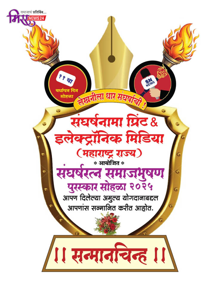 नगर (प्रतिनिधी)- विविध क्षेत्रात उल्लेखनीय कार्य करणाऱ्या कर्तृत्ववान व्यक्तींचा 15 ऑगस्ट रोजी संघर्षरत्न समाजभूषण पुरस्कार सोहळ्यात सन्मान केला जाणार आहे. संघर्षनामा प्रिंट ॲण्ड इलेक्ट्रॉनिक मीडियाच्या (महाराष्ट्र राज्य) वतीने या सन्मान सोहळ्याचे आयोजन करण्यात आले आहे.