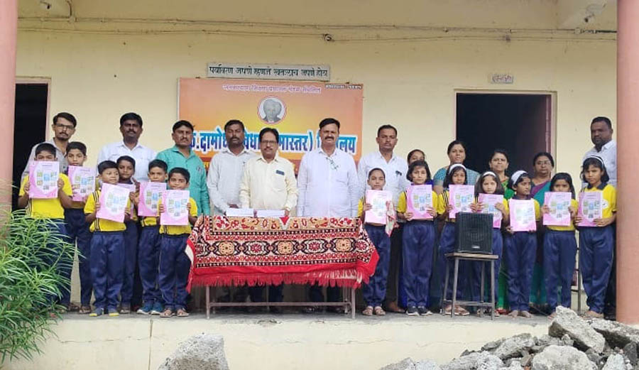 संस्थेचे सरचिटणीस प्रा. शिवाजीराव विधाते यांच्या हस्ते विद्यार्थ्यांना गुलाबपुष्प व पाठ्यपुस्तकांचे वाटप करण्यात आले. यावेळी मुख्याध्यापक शिवाजी म्हस्के, संतोष सुसे, शिक्षकवर्ग सविता सोनवणे, लता म्हस्के, राधाकिसन क्षीरसागर, दरवडे योगेश, भाऊसाहेब पुंड, जावळे निता, अमोल मेहेत्रे, सारिका गायकवाड, सचिन बर्डे आदी उपस्थित होते.
