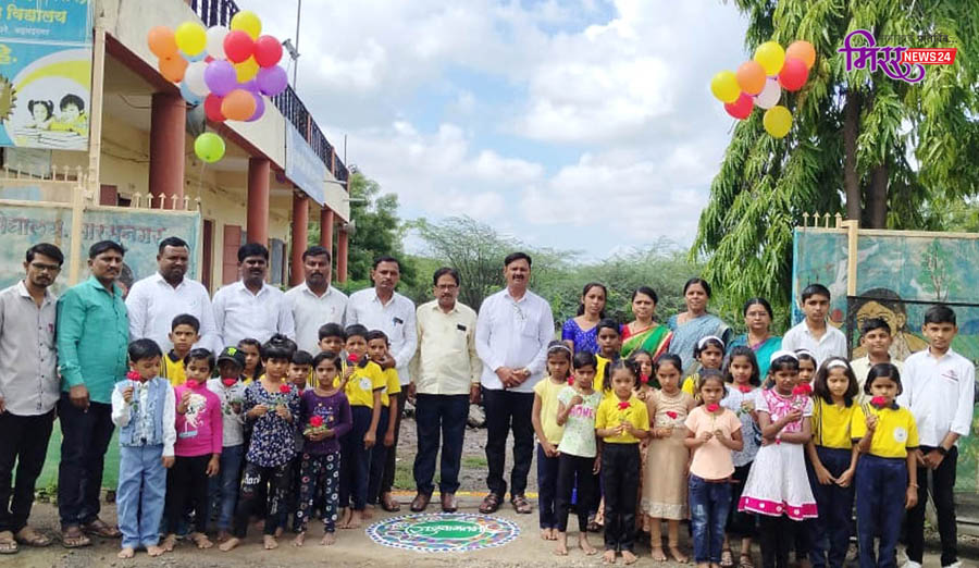 संस्थेचे सरचिटणीस प्रा. शिवाजीराव विधाते यांच्या हस्ते विद्यार्थ्यांना गुलाबपुष्प व पाठ्यपुस्तकांचे वाटप करण्यात आले. यावेळी मुख्याध्यापक शिवाजी म्हस्के, संतोष सुसे, शिक्षकवर्ग सविता सोनवणे, लता म्हस्के, राधाकिसन क्षीरसागर, दरवडे योगेश, भाऊसाहेब पुंड, जावळे निता, अमोल मेहेत्रे, सारिका गायकवाड, सचिन बर्डे आदी उपस्थित होते.