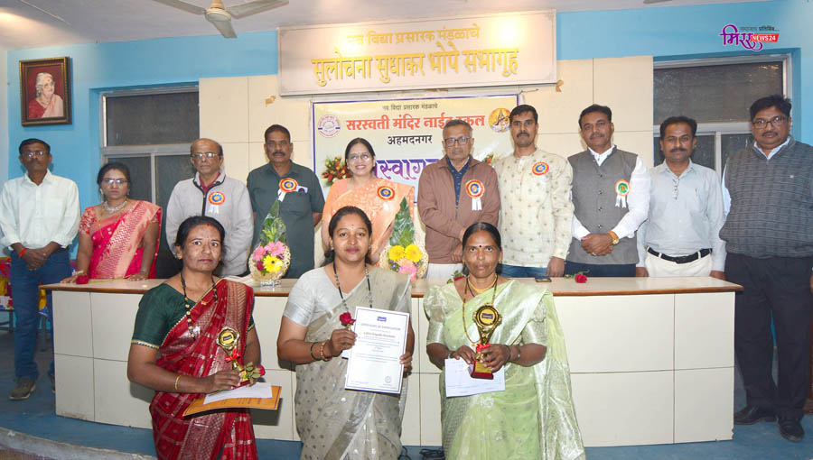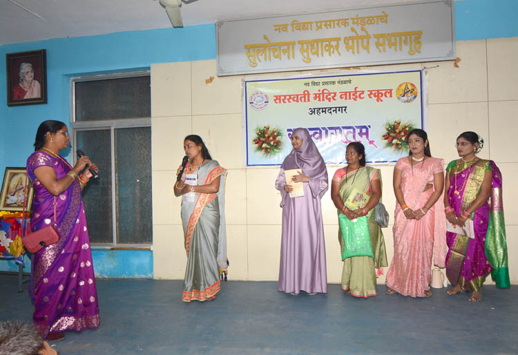 अहिल्यानगर (प्रतिनिधी)- शहरातील नवविद्या प्रसारक मंडळाच्या सरस्वती मंदिर नाईट स्कूलचे वार्षिक स्नेहसंमेलन व पारितोषिक वितरण समारंभ मोठ्या उत्साहात पार पडले. विविध कारणांमुळे शिक्षण अर्धवट सोडल्यानंतर पुन्हा शिक्षणाच्या प्रवाहात आलेल्या विद्यार्थ्यांनी सांस्कृतिक कार्यक्रमातून आपले कलागुण सादर करत कार्यक्रमात चैतन्य निर्माण केले. हिंदी-मराठी गाण्यांवर सादर झालेली नृत्ये, कोळी नृत्य व रिमिक्सवर विविध संस्कृतीचे दर्शन घडविणाऱ्या सादरीकरणांनी उपस्थितांची मने जिंकली.