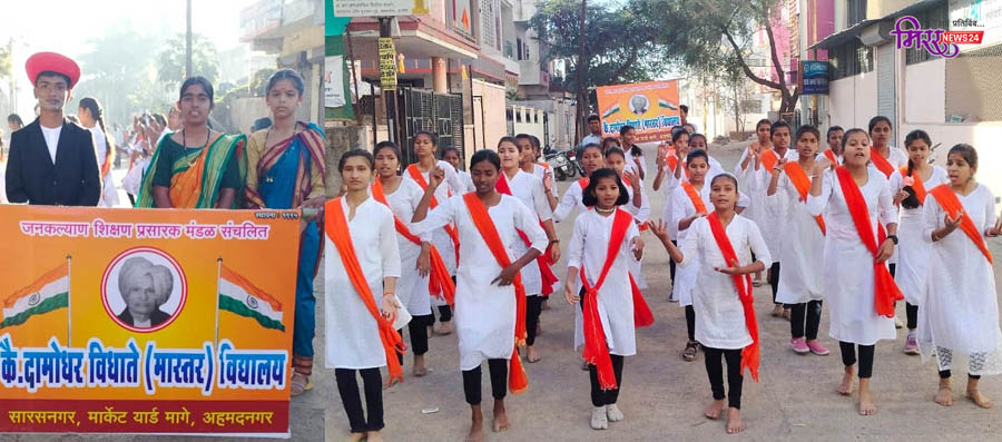 नगर (प्रतिनिधी)- क्रांतिज्योती सावित्रीबाई फुले यांच्या जयंतीनिमित्त कै. दामोधर विधाते विद्यालयाच्या वतीने सारसनगर येथे अभिवादन रॅली काढण्यात आली. पारंपारिक ढोलचा निनाद व मुलींच्या लेझिम पथकाचा डाव रंगला होता. मुलगी शिकली प्रगती झाली…, स्त्री शिक्षणाचा दिवा लावा घरोघरी… तर क्रांतिज्योती सावित्रीबाई फुलेंच्या जयघोषाने संपूर्ण परिसर दुमदुमले.