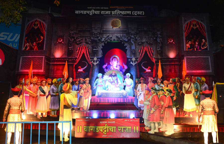 बागडपट्टीचा राजा प्रतिष्ठान ट्रस्टने गणेशोत्सवानिमित्त साकारलेला शिवराज्याभिषेक सोहळा देखावा खुला