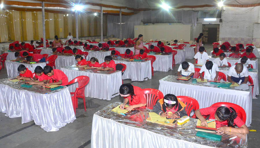 सकाळच्या सत्रात घेण्यात आलेल्या परीक्षेमध्ये विद्यार्थ्यांनी मोठमोठी गणिते झटपटपणे सोडवित अवघ्या 5 मिनीटाच्या आतमध्ये आपला पेपर सोडवित उपस्थितांना अवाक केले. ही स्पर्धा केजी, ज्युनिअर, मास्टर ज्युनिअर, लेवल 1 ते 7 व वैदिक मॅथ्स या गटात पार पडली. 5 मिनीटाच्या राऊंडमध्ये अवघड गणिती प्रक्रियेचे पेपर विद्यार्थ्यांनी अत्यंत जलदगतीने सोडविली.