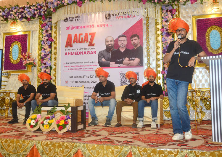 सावेडी येथील कोहिनूर मंगल कार्यालयात आयोजित करण्यात आलेल्या आगाज या करियर मार्गदर्शन व्याख्यानाचे उद्घाटन सरस्वती पूजन व दीपप्रज्वलनाने करण्यात आले. यावेळी नगर मधील फिजिक्सवाला विद्यापीठ पाठशाळेचे संचालक मंडळ आदींसह मार्गदर्शक शिक्षक व विद्यार्थी मोठ्या संख्येने उपस्थित होते.