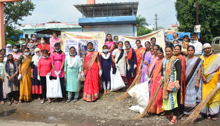 जनशिक्षण संस्थेच्या महिला व युवती हातात झाडू घेऊन उतरल्या रस्त्यावर