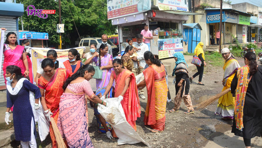 जनशिक्षण संस्थेच्या महिला व युवती हातात झाडू घेऊन उतरल्या रस्त्यावर