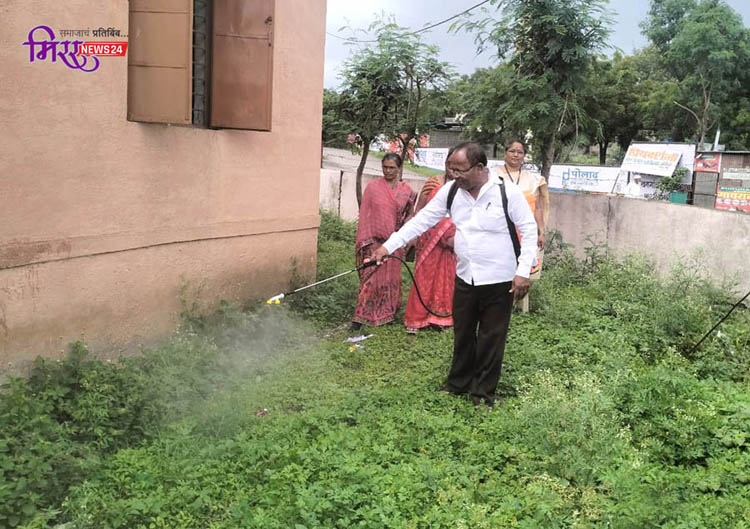 सध्या पावसाळ्याचे दिवस असल्याने गावात मोठ्या प्रमाणात गवत वाढून व लहान-मोठे पाण्याच्या डबक्यात डासांची उत्पत्ती होत आहे. संभाव्य साथीच्या आजाराचे धोके टाळण्यासाठी डोंगरे यांनी पुढाकार घेऊन जिल्हा परिषद शाळा परिसर, मारुती मंदिर व मस्जिद परिसरात औषधाची फवारणी केली.