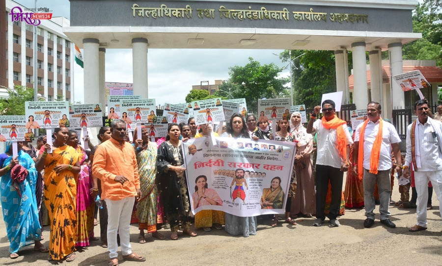 अहमदनगर (प्रतिनिधी)- महाराष्ट्रात शाळकरी विद्यार्थिनीपासून ते महिलांना सुरक्षिततेची हमी देण्याच्या मागणीसाठी राष्ट्रवादी काँग्रेसच्या (शरद पवार गट) वतीने जिल्हाधिकारी कार्यालयावर आक्रोश मोर्चा काढण्यात आला. मोठ्या संख्येने सहभागी झालेल्या महिला व युवतींनी जोरदार निदर्शने करुन राज्य सरकारचा निषेध नोंदविला. भीक नको, संरक्षण हवे! च्या घोषणांनी परिसर दणाणून निघाला.