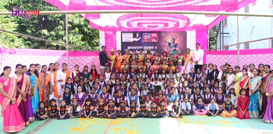 ज्ञानसाधना गुरुकुलच्या विद्यार्थिनींचे दुर्गामाता पूजन