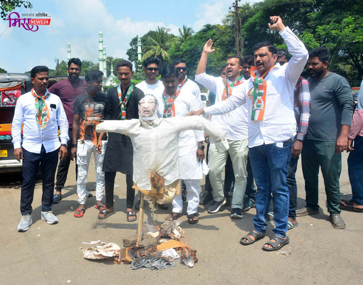 अहमदनगर (प्रतिनिधी)- वारंवार वादग्रस्त व चिथावणीखोर वक्तव्य करुन हिंदू-मुस्लिम समाजात द्वेष पसरवित असल्याच्या निषेधार्थ शहरात युवक काँग्रेसच्या वतीने भाजपचे आमदार नितेश राणे यांचा प्रतिकात्मक पुतळा जाळण्यात आला. जातीयवादी प्रवृत्तीचा निषेध नोंदवून समाजात अशांतता पसरविणाऱ्या राणे यांच्यावर कठोर कारवाईची मागणी करण्यात आली.